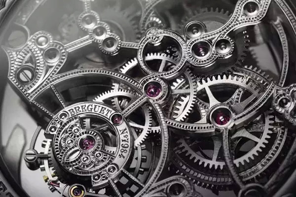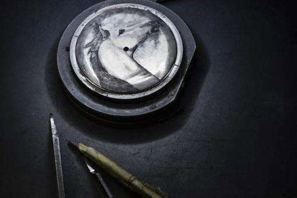 工艺大师以普通机芯为基础,先用针把需要镂空的部分钻成小孔,剔除多余金属,然后用雕刻刀把所有边缘修饰成45°角斜边以及把机芯面雕成不同的图案。